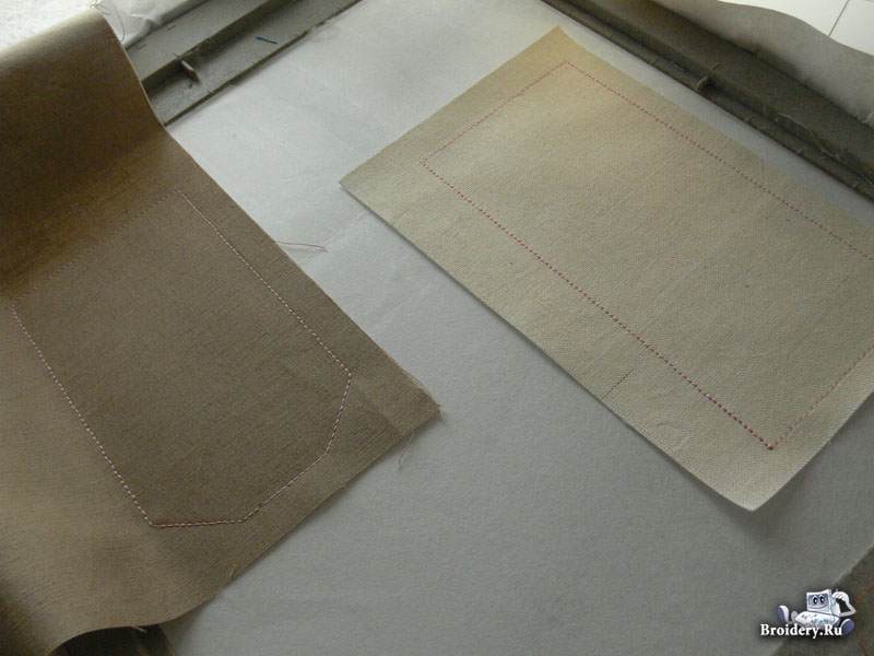 Вышейте наметочную строчку, определяющую расположение лоскута ткани для ярлыка.