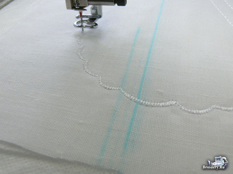 Запустите вышивку и отшейте первый цвет, разметку и укрепляющую строчку зиг-заг.