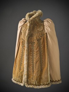 Данный экспонат служил верхней одеждой туалета знатных дам. Манто сшито из дорогих материалов, шерстяная подкладка, шелк и бархат, расшитое стеклярусом и украшенное вышивкой.