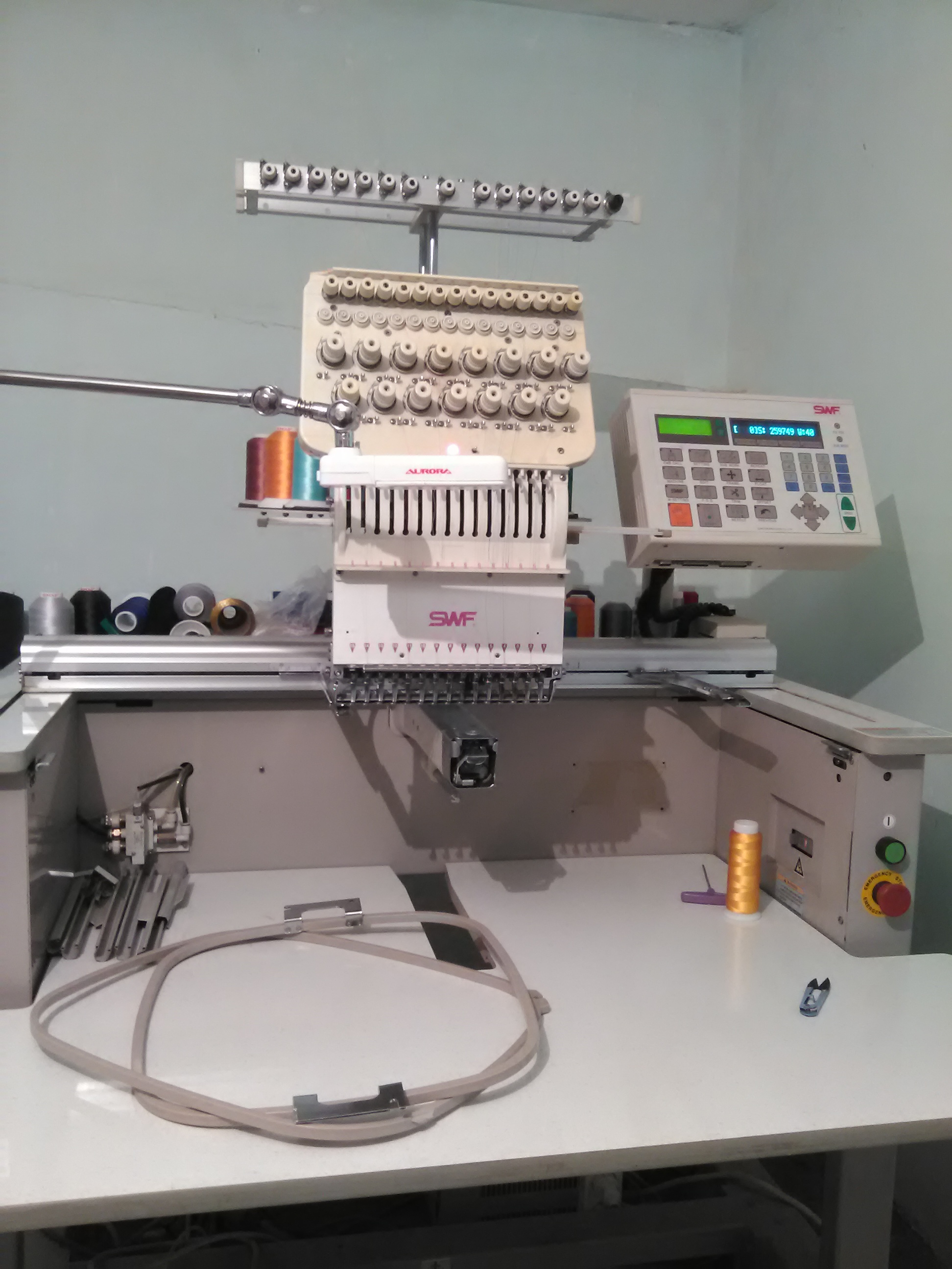 - 1 вышивальная машина однаголовная, 15 игольная фирмы SWF (южная Корея). С максимальным полем вышивки 36см Х 52см. Стоимость новой машины у официального дилера в Москве: $14.200