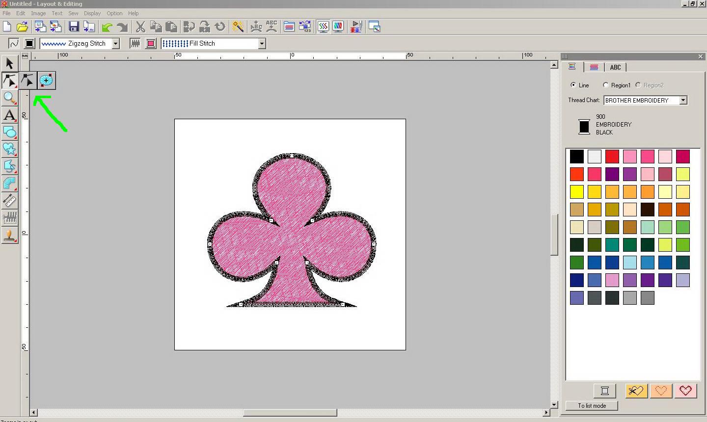 Тигрица писал(а): А как перейти в режим редактирования по стежкам, чтобы убрать закрепки? Чтобы перейти в режим редактирования нужно выделить дизайн и кликнуть на инструмент, который указан стрелкой на скрине. Вложение: