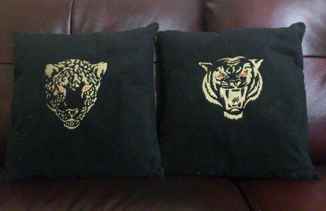 Классные получились подушки!!! Очень красиво и стильно. Зебры так хорошо легли, мне кажется что тут малейшая ошибка может испортить эффект. А на каком материале вышивалось? |