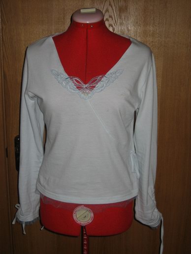 Мне понравилось, необычна идея с розовым блузоном, это идея такая скомпоновать так ткани?, а белую уже видела в теме вышивка на сетке, красивая кофточка, и вышивка смотрится хорошо. |