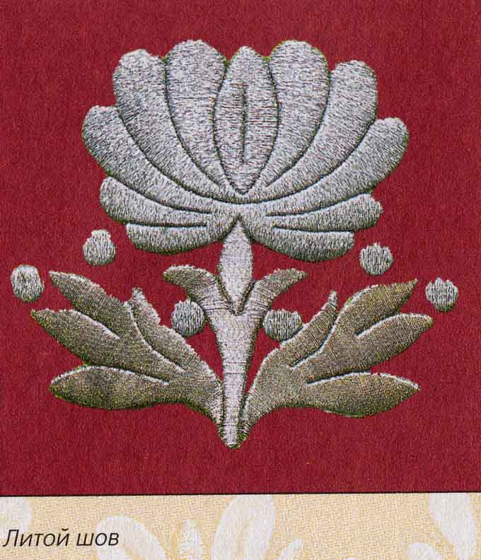 Поскольку техника шитья золотой нитью отличается от обычного вышивания, то, как правило, золотое шитье - это односторонняя вышивка. Согласно утверждениям Н.В.Бабушкиной ("Золотое Шитье" Москва - Олма-Пресс 2004г) технику шитья можно свести к трем основным стежкам: Литой Шов, Шов "в раскол" и шов "в прикреп". Идем по порядку... "Литой шов - гладкий шов золотом. Золотую нитку продевают сверху вниз, через ткань около края вышиваемой формы (картона или настила) и закрепляют. Затем применяется шитье " в прикреп", при котором зототая нить накладывается параллельными стежками сверху по определенному контуру. Каждый стежок золотой нити прикпреляют по границам шитья к ткани крученой шелоковой или хлопчатобумажной нитью прикрепа. Иголка с этой нитью выкалывается на краю формы, захватывает золотую нить и утягивает ее в эту же дырочку прокола. Витейка с золотой нитью перекладывается на противоположную сторону мотива и все повторяется снова. Стежок к стежку ложаться очень плотно, без просветов, но и без наложения друг на друга. Горизонтальные фигуры вышиваются слева направо, то есть наложение стежков идет слева направо, а вертикальные - снизу вверх. При этом нужно обратить внимание на два важных момента. Во-первых, в горизонтальных фигурах при вертикальном расположении стежков сильнее утягивается нижняя часть прикрепа, а верхняя чуть-чуть. И, соответственно, правая сторона прикрепа утягивается сильнее, чем левая при горизонтальном расположении стежков. Во-вторых, при вышивании горизонтальной формы игла вкалывается справо от золотой нити, обхватывает ее и возвращается в ту же дурочку прокола от золотой нити. Соответственно, в вертикальных формах игла выкалывается с верхней стороны от золотой нити, а возвращается с нижней. то есть игла все время делает движение назад относительно направления наложения золотых стежков. Си знаночной стороны в виде восьмерок. Очень важно чувствовать натяжение нити. Золотоая нитка протягивается на изнанку чуть-чуть на границах формы. При вышивании закруглений на формах, чтобы сохранить параллельность стежков, на выпуклостях их делают довольно редко, а в вогнутой части рисунка располагают плотоно. При этом стежки не сваливаются и укладываются плотно, без просветов. При мягкой плотной подкладочной ткани золотая нить может не протягиваться в место проколоа, а "утапливаться" в ней. В этом случае можно работать без шила, а шилом необходимо пользоваться при работе с кожей, замшей, другими плотными материалами, где, чтобы достичь ровного литого шва, нужно заранее прокалывать точки начала и конца золотого стежка." ПыСы: Ну тут вроде бы понятно. Гладь, где верхняя нить золотая, а нижняя, она и в Африке нижняя. Правильно? Вышивальщики занимающиеся церковной вышивкой, опишите плиз свои добавки применимо к машинной. Оно вроде все понятно что делать, но те кто использует эту технику, вероятно знакомы с некоторыми нюансами машинной технологии. Спасибо.