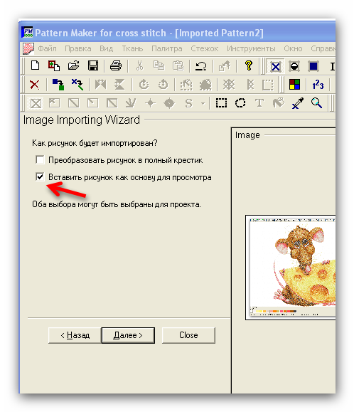 Добрый вечер всем! Можно я вставлю свои пять копеек.Девочки ,картинка,сделанная автоматом,наделает вам столько одиночных крестиков,замучаетесь их убирать.А после того,как их уберете,может потеряться качество.Если картинка не сложная,не так уж и долго набирать руками. |