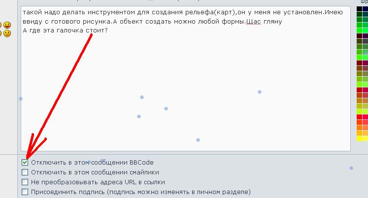 Я тебе уже объясняла почему они не вставляются. :0)) Ты когда пишешь сообщения, у тебя стоит галочка "Отключить BBCode" убери ее и все будет вставляться. Спасибо, Галь, а можно все тоже самое, только на объекте нарисованном Саидой? |