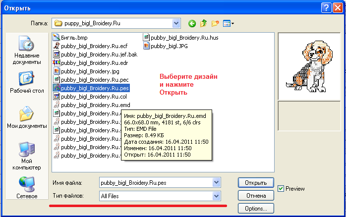 ДОБАВЛЕНИЕ НАДПИСИ К ГОТОВОМУ ДИЗАЙНУ МАШИННОЙ ВЫШИВКИ Вы скачали дизайн машинной вышивки и вам очень хочется добавить к нему надпись. Откройте дизайн в программе Wilcom File-Open (или нажмите комбинацию клавиш Ctrl+O) Вложение: уроки wilcom (467).png [ 7.69 КБ | Просмотров: 42383 ] В открывшемся окне выберите папку где лежат дизайны, в графе Тип файлов укажите All Files (Все типы) Выберите нужный дизайн и нажмите Открыть Вложение: Описанным выше способом создайте надпись к вашему дизайну и разместите ее как вам хочется. Обратите внимание на размер файла с надписью. ОН НЕ ДОЛЖЕН ПРЕВЫШАТЬ РАЗМЕР ВАШИХ ПЯЛЕЦ. Как узнать размер дизайна с надписью? 1. Нажмите комбинацию клавиш Ctrl+A (Выделить Всё) и посмотрите в правую нижнюю часть экрана. Там сообщаются размеры дизайна по горизонтали (W) и вертикали (H), ну или по ширине и высоте. Как вам удобно будет. Вложение: