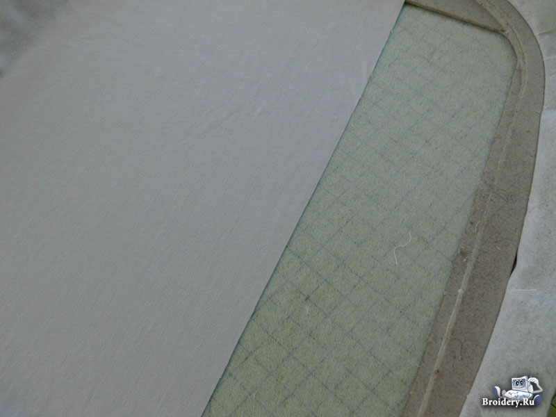 Приклейте срез ткани точно по нарисованной линии. Запустите процесс вышивки.