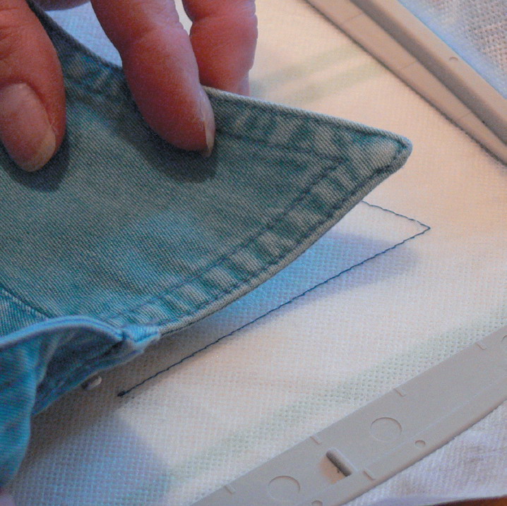 Вы можете распороть готовое изделие или разместить его на стабилизаторе не распарывая, все зависит от размеров и от возможности расположить, намеченную под вышивку, деталь на стабилизаторе. Если деталь изделия без проблем размещается в пяльцах и нет необходимости ее распарывать, достаточно воспользоваться специальным клеем-спреем, с помощью которого деталь будет удерживаться на стабилизаторе без запяливания.
