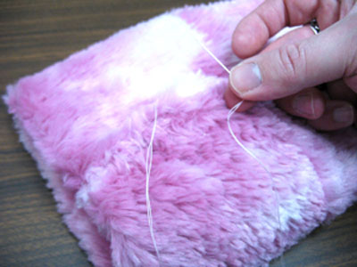 Отрежьте кусок плотной водорастворимой пленки и поместите его поверх области вышивки, с лицевой части меховой ткани.