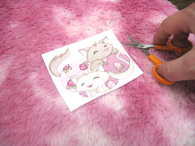 Распечатанный шаблон используется, для точного размещения рисунка вышивки на ткани, обрежьте бумагу вокруг рисунка вышивки. Положите мех лицевой стороной вверх и расположите шаблон в центре прямоугольника.