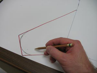 Нарисуйте кривые линии около 2,5 см в длину на внутренних углах выкройки и проведите плавную изогнутую линию от верхней части к нижней.