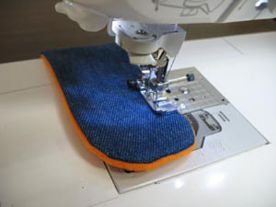 Выверните деталь, подверните припуск в районе отверстия для выворачивания. Проложите отделочную строчку по краю детали. В районе деталей застежек выполните закрепочные стежки.