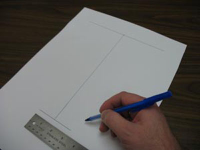 Для создания шаблона выкройки возьмите большой лист бумаги. Мерку В разделите на 2 и прибавьте к получившемуся числу 2,5 см, для припусков на швы. Отметьте на листе бумаги получившееся значение, это будет измерение для основной части рисунка. Затем возьмите мерку C и прибавьте к ней 2,5 см для припусков на швы. Это будет высота главной секции.