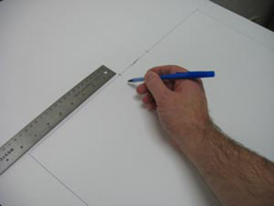 Нарисуйте прямоугольник на листе бумаги при помощи полученных измерений. Оставляя около 25 см в верхней части листа и по 10 см с каждой стороны. Теперь подготовьте шаблон для шеи собаки. К мерке А прибавьте 10 см, получившееся число разделите на 3. Затем нарисуйте линию длины этого измерения, поставьте метку. Отметьте положение центра этой линии путем измерения длины и деления её на 2. Нарисуйте линию такой же длины перпендикулярно к первой линии. Затем, проведите перпендикулярные линии из концов второй линии длиной 4 см. Соедините точки на концах прямыми линиями.