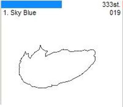 Поместите ткань аппликации на вышитый контур так, чтобы ткань закрыла его с небольшим запасом. Слегка надавите на ткань, чтобы приклеить ее. Запустите вышивку, машины прошьет такой же контур как и ранее. После вышивки машина остановится.