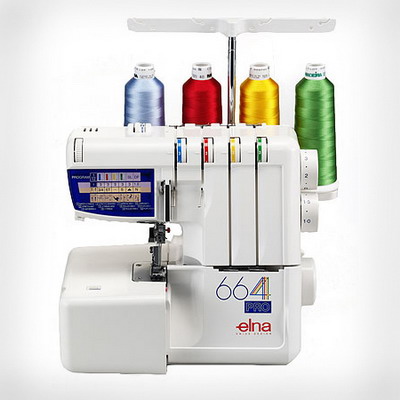 Эта модель дает возможность выполнять двух, трех и четырех-ниточные швы, также в ней предусмотрена возможность плавно изменять ширину обметки. Ширина шва зависит от того сколько нитей было выбрано пользователем. В оверлоке Elna 664 pro есть функция отключения ножа, что позволяет выполнять швы на угловых и округлых вогнутых деталях без риска повредить изделие.