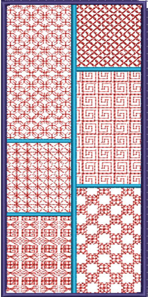 Выберите дизайн B0056a и затем кликните на кнопку Apply. Выберите средний левый прямоугольник и щелкните правой кнопкой мыши на Blackwork Fill. Через кнопку Select добавьте файл B80017a, измените размер по осям X и Y до 0,25 дюйма и уменьшите расстояние между строками и столбцами до 0,3 дюйма. Нажмите кнопку Apply.