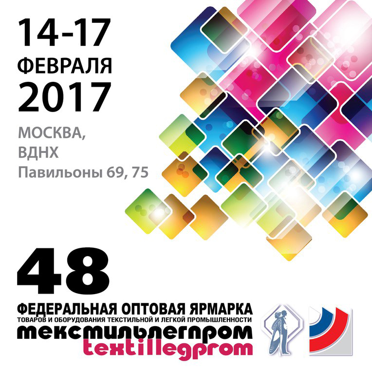 Приглашаем принять участие в 48-ой крупнейшей Федеральной оптовой выставке «ТектильЛегПром». Двери павильонов будут открыты для всех желающих с 14 по 17 февраля 2017 г. Новинки оборудования, представленного нашей компанией и аппараты, составляющие топы продаж можно будет увидеть на стендах 1В и 2А в павильоне №75, ВВЦ.