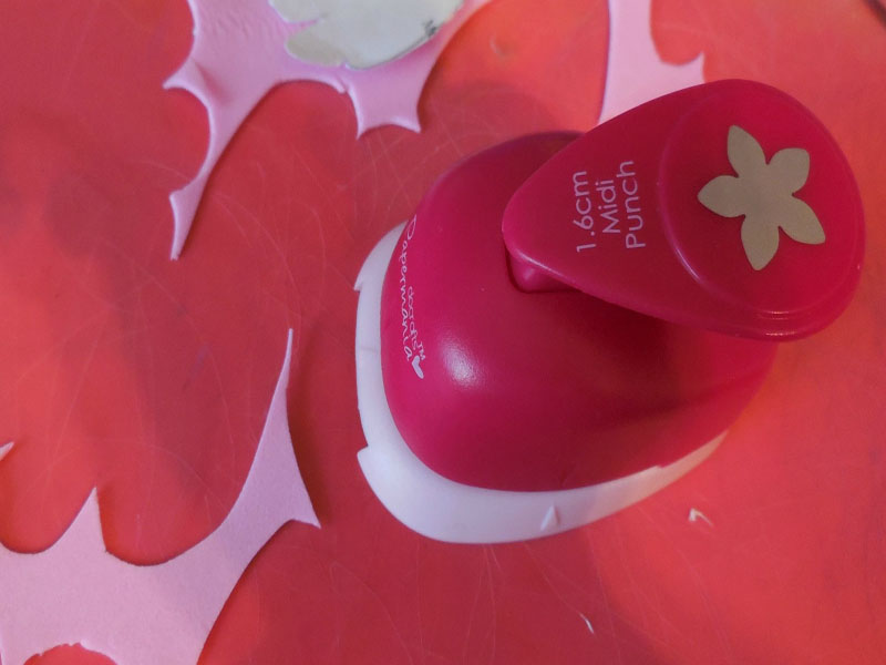 Для создания мелких цветочков вы можете воспользоваться как новым листом фоамирана, так и остатками материала от других проектов. Вырежьте заготовки для цветов с помощью фигурного дырокола или макетного ножа. Неровный край вас не должен смущать.