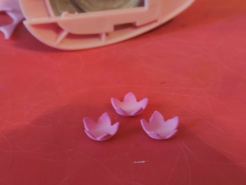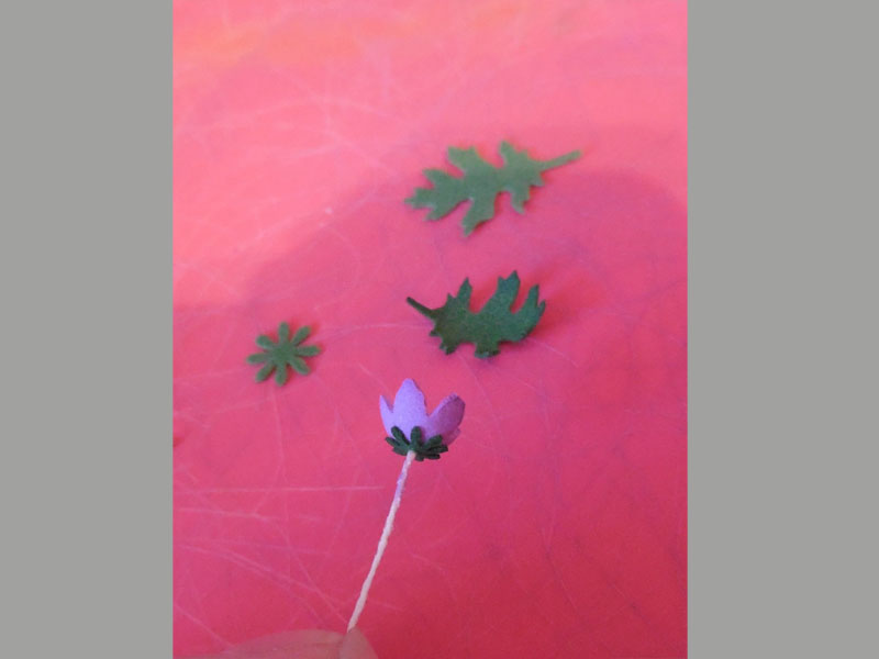 Готовые детали проколите толстой иглой и нанижите на проволоку. Листок, затем чашелистики и лепесточки.