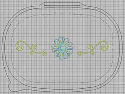 Вставьте в программу дизайн №21000-20—Jumbo Flower. С помощью клавиш со стрелками на клавиатуре, переместите дизайн вниз, так чтобы он был выше центра цветка, но не выходил за границы пяльцев. Следите, чтобы этот дизайн не заходил на другие элементы композиции. Дизайн №21000-12—Daisy Flower Head поместите слева от большого цветка, а №21000-13—Sunflower Flower Head справа.
