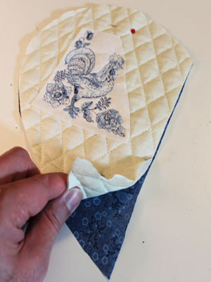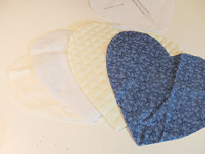Повторите сборку бутерброда для задней части прихватки. Сложив стеганую ткань, прокладочный слой и ватин. Прошейте по контуру.