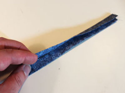 Сделайте петлю из ткани подкладки. Вырежьте кусок ткани шириной 6,5 см и длиной 20 см. Сложите края полоски к центру и приутюжьте, затем сложите пополам и приутюжьте. Прошейте по краю и сложите полоску петлей. Получившуюся петлю вложите внутрь прихватки в верхней ее части. Прошейте детали по контуру, оставив отверстие для выворачивания на одной из боковых сторон.