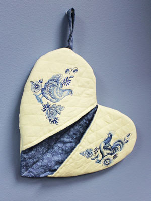 Добавьте в интерьер вашей кухни фольклорные мотивы. Прихватка убережет руки, когда вы будете придерживать кастрюльку с кашей или достанете противень с пирогом из горячей духовки. Сделайте прихватку в виде сердечка — это удобно и красиво. Плотный слой прокладочного материала защитит руки, петелька позволит повесить изделие на крючок, экономя место на небольшой кухне. Вы можете выбрать дизайн вышивки подходящий к интерьеру кухни или вышить рецепт любимого блюда. О том, как сделать прихватку в виде сердечка читайте в мастер-классе.
