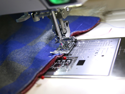 Если у вас тонкая или эластичная ткань, укрепите края ткани при помощи тонкой полоски стабилизатора или специальной нитепрошивной тесьмы.