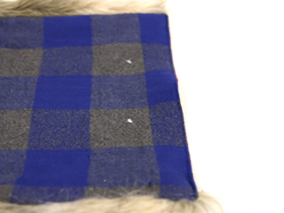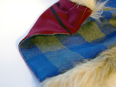 Если вы хотите добавить меховую отделку по краям шарфа, самое время это сделать! Просто вложите полоску меха между деталями. Но мех нужен только по длинным сторонам шарфа, на коротких будет расположена застежка!
