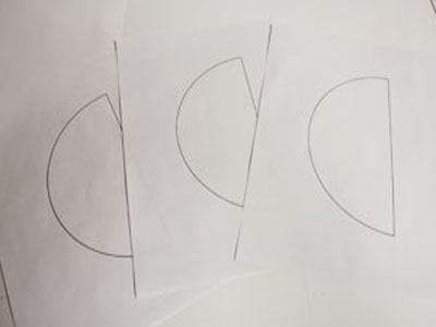 Для оформления нижнего края фартука начертите крупные фестоны нужного вам размера или воспользуйтесь готовым шаблоном. Распечатанный шаблон приложите к краю детали фартука и обведите по внешнему контуру, вырежьте.