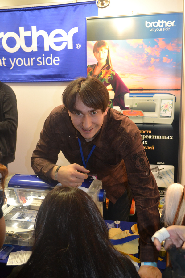 Среди посетителей J-Frest, в основном молодежи увлеченной японской культурой, вышивальное оборудование фирмы Brother вызвало живой интерес. Ведь многие из участников создают себе костюмы самостоятельно, а на стенде каждый желающий мог с помощью программного обеспечения PE-Design Next перевести любимую картинку в дизайн машинной вышивки и украсить футболку или сумочку. Вышивали на всем: на полотенцах, футболках, ленточка. Любой креатив поощрялся и все ушли довольными.