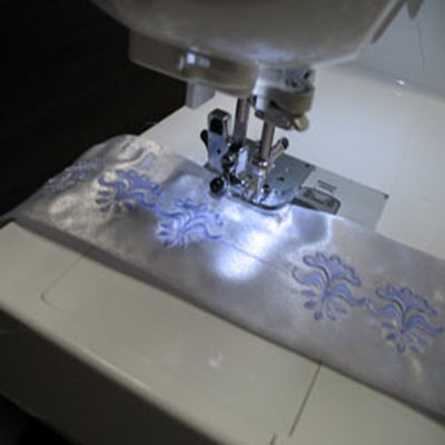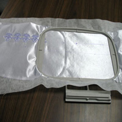 По окончанию вышивки первой части дизайна, распяльте ткань. Переместите ее для запяливания следующего участка. Таким образом, выполните вышивку по всей длине детали. Когда вышивка всех частей будет закончена, удалите стабилизатор с изнаночной стороны ткани.