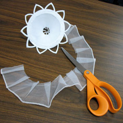 Закладывайте полоску ленты в складки и закрепляйте их горячим клеем.