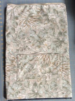 Вырежьте второй прямоугольник размером 33х50,5 см, но с другими припусками на швы. Со стороны вышивки запас материала равен 7,5 см, а с боковых и нижней стороны ширина припуска равен 4 см.