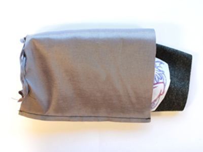 Через незашитое отверстие выверните мешок на лицевую сторону. Зашейте отверстие для выворачивания. Оформите верхний край с перекатом и прострочите по верхнему краю на расстоянии 0,5 см.