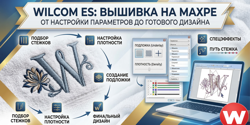 Освойте профессиональное создание дизайнов вышивки для махровых тканей в программе Wilcom ES. В курсе вы научитесь настраивать параметры стежков для халатов и полотенец, работать с плотными фактурными поверхностями, выбирать оптимальные типы заполнения и подложки.