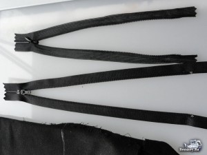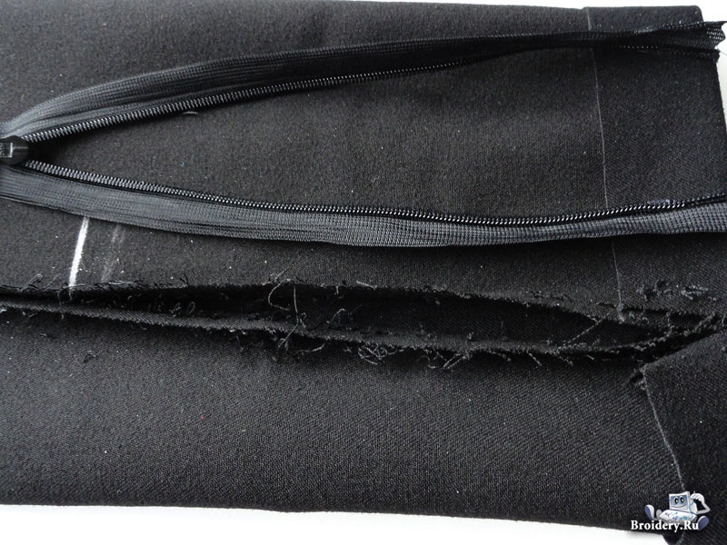 Распорите боковые швы, ориентируясь на длину молнии, которую будете вставлять. Учтите, что 2 см потайной молнии нерабочие. Поэтому итоговая длина распарываемого шва равна длина молнии минус 2 см. Чтобы брюки по боковому шву не разошлись дальше, закрепите строчку. При необходимости обработайте распоротые края на оверлоке.