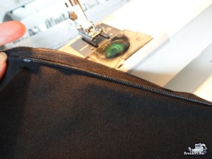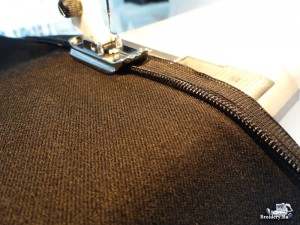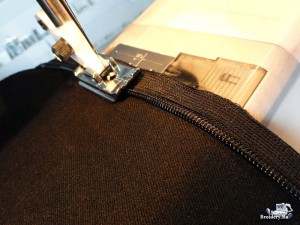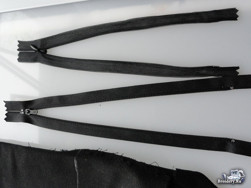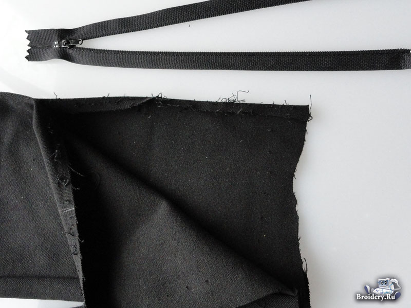 В боковые швы вшейте потайную молнию, для удобства её пришивания используйте лапку для вшивания скрытой (потайной) молнии.