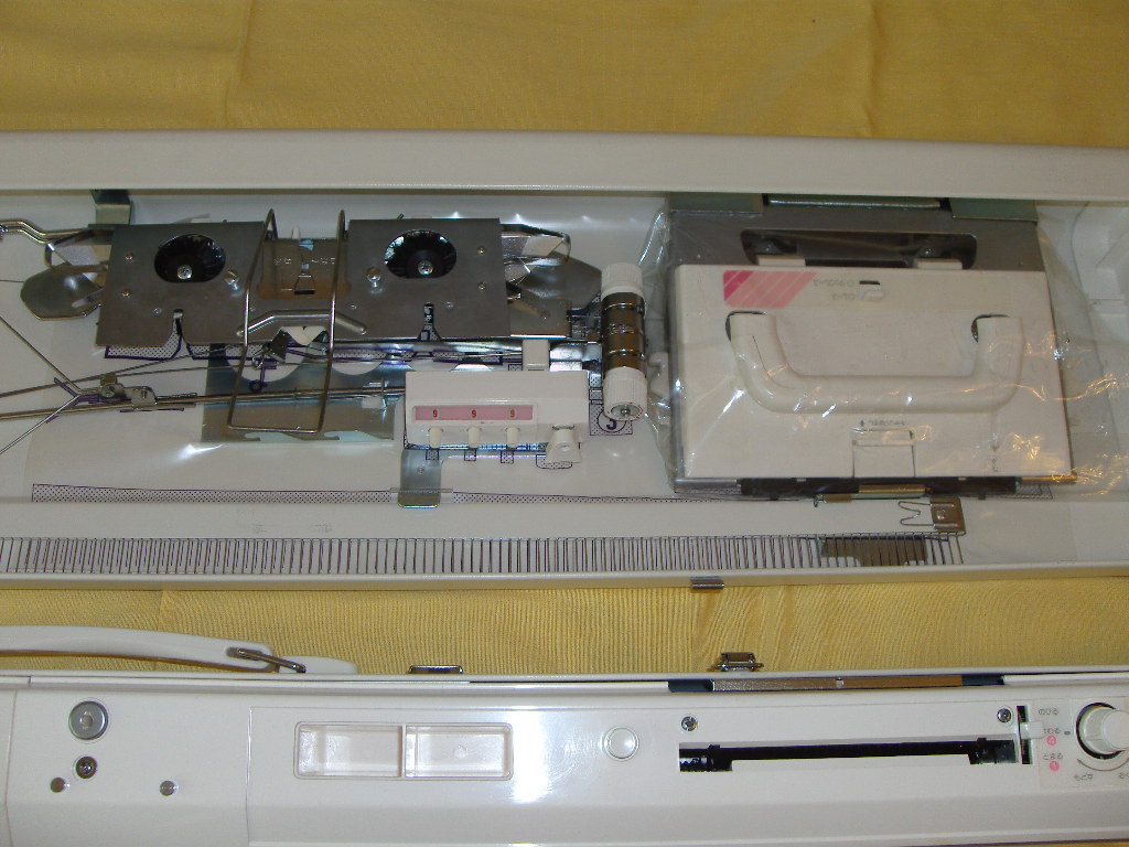 Вязальная машина компьютерная Brother KH-930/850. В машине имеется 555 рисунков , интарсия панчлейс, комплектуется ажурной кареткой, а так же во второй фантуре жаккардовая каретка с пике, двухфантурный платинг.) Новая. Стоимость машинки 59 тыс. руб