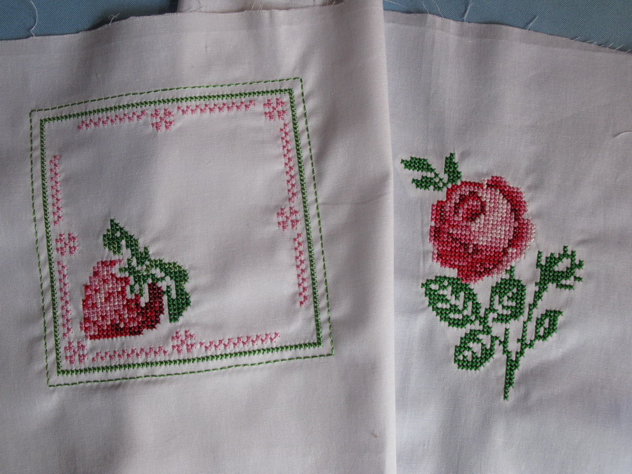 Заготовки на будущие мелочи-изделия -- нежненькое крестиком) Ткань - мадепалан /вроде как/, нитки - вискоза Мадейра и аманновский вышивальный полиэстр.