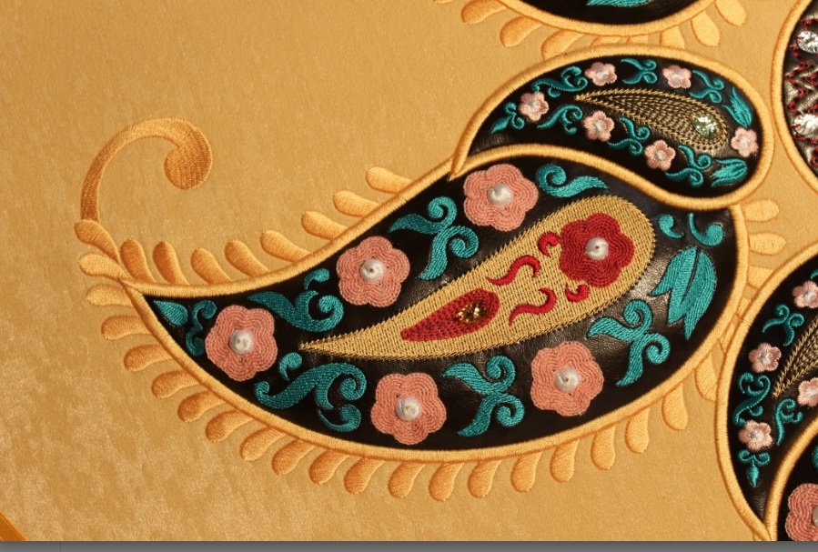 Работы участников были бесподобны: творческий замысел, цветовая композиция, реализация. Очарование, восхищение и подпитка вдохновения — вот как я могу охарактеризовать работы конкурсантов. Организаторы мероприятия дополнили галерею Конкурсных работ и другими произведениями мастеров из-за рубежа, а также Ярославской вышивальной фабрики. Масштабы некоторых работ, например панно «Драконы» 2,5х2,5 метра, не могли не удивить меня, обладательницу скромной бытовой вышивалочки. Но оказывается и на бытовых машинах можно сделать великолепные работы, к примеру, декорировать вышивкой металликом шлейф бархатного бального платья. Панно «Птицы» с имитацией эмалированной и черненой чеканки завоевало симпатии зрителей, яркое кресло каждый мысленно примерял в интерьере своего дома, сумочку с острыми перцами мечтала унести каждая представительница прекрасного пола. Живые глаза вышитых портретов и икон, мельчайшие элементы натюрмортов, детальная проработка, оригинальность — членам жюри пришлось основательно потрудиться, чтобы сделать выбор среди множества прекрасных работ.