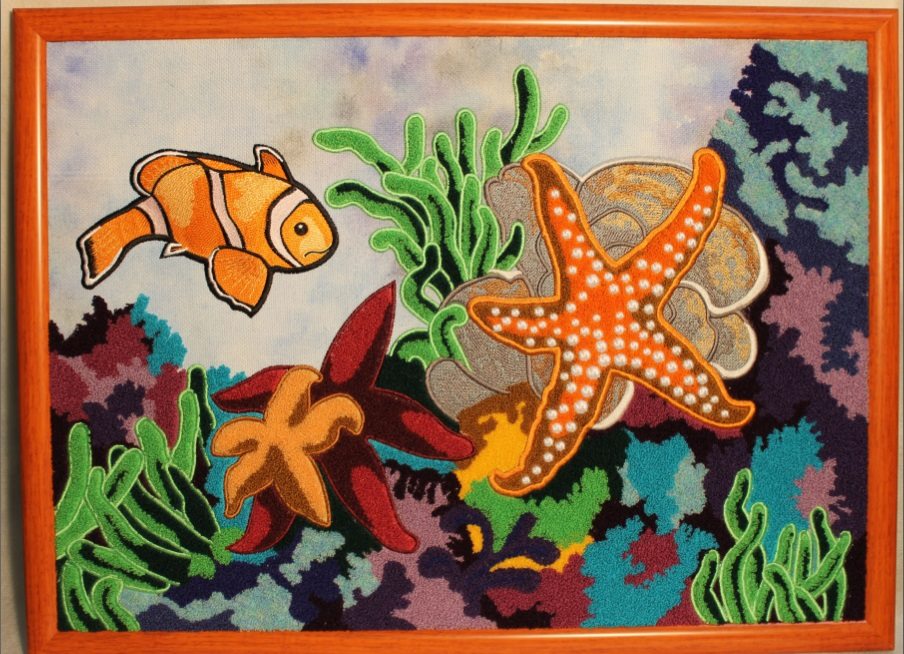 С Еленой и ее работами я была знакома, благодаря интернету и была очень рада пообщаться в живую. Она провела интересную тематическую беседу, рассказала о своем направлении в искусстве машинной вышивки — вышитая скульптура и объемные панно. Со слов мастера все кажется таким простым, но, бросая взгляд на работы понимаешь сколько труда, неимоверных усилий, тысяч стежков, бессонных ночей вложено в каждый шедевр.