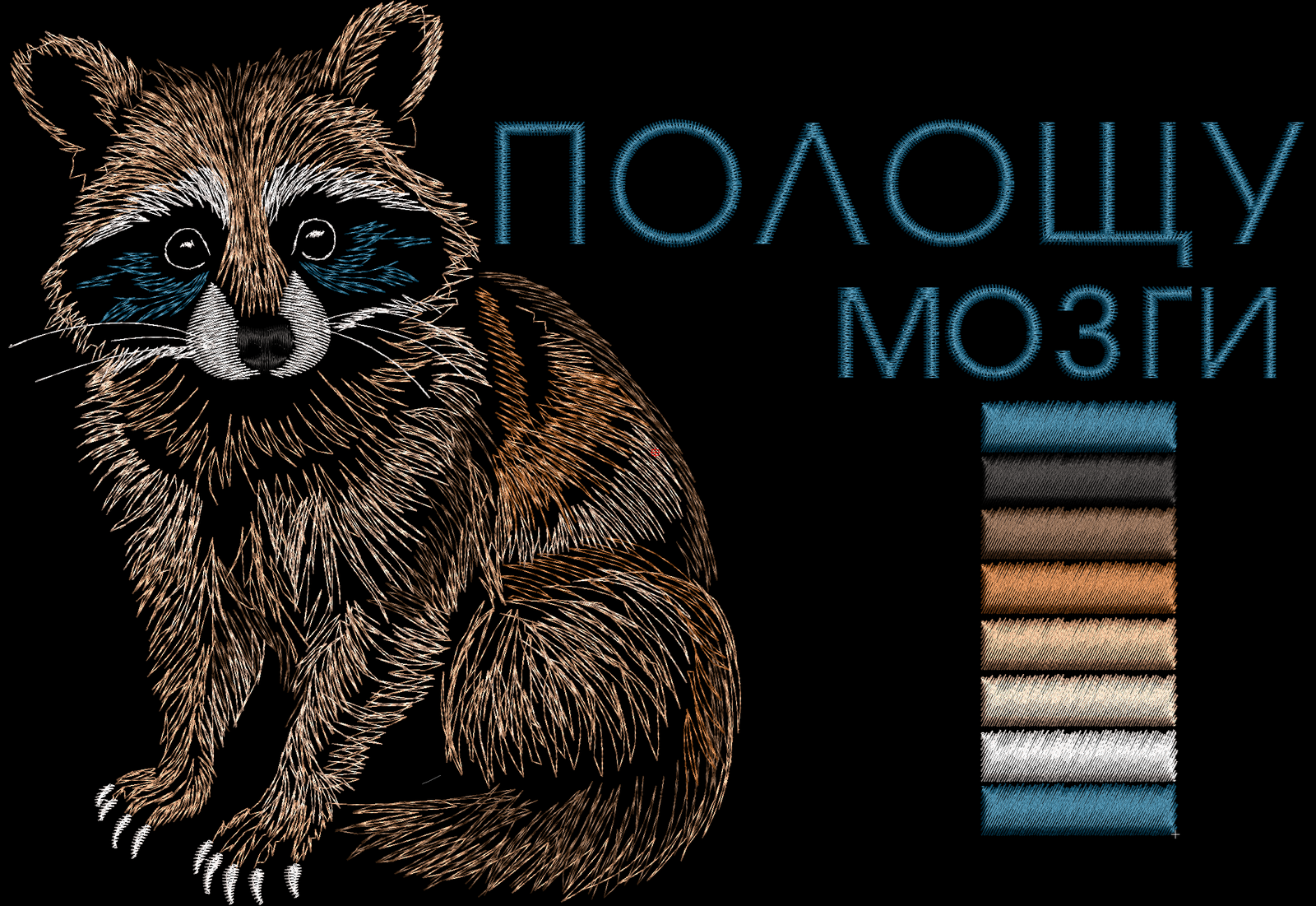 Если ваш енот чувствует себя слишком скромным в текущем размере, а программы Wilcom у вас нет даже в планах на пятилетку — не беда! Просто намекните нам, и мы отправим вам в архиве XL-версию этого полосатого грабителя. Потому что каждый заслуживает енота по размеру своих амбиций!