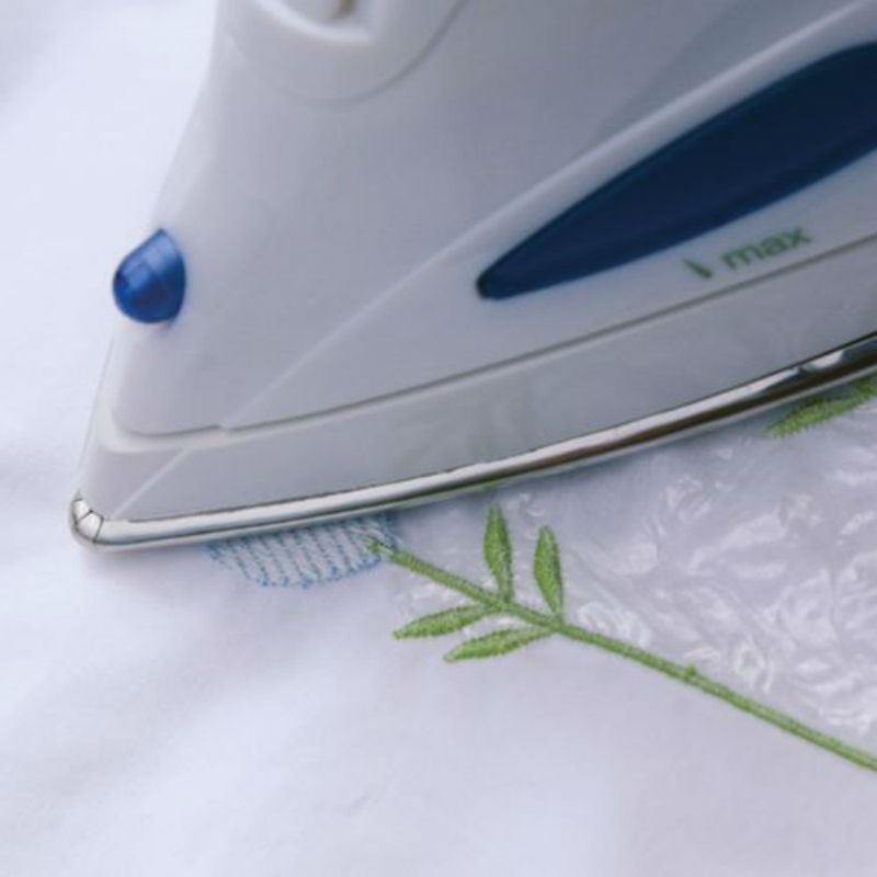 Применение: после окончания вышивки аккуратно оборвите лишний материал. Остатки материала удалите утюгом круговыми движениями (БЕЗ ПАРА!) Пленка плавится и превращается в жёлто-коричневые гранулы, которые легко стряхиваются или счищаются щёткой.