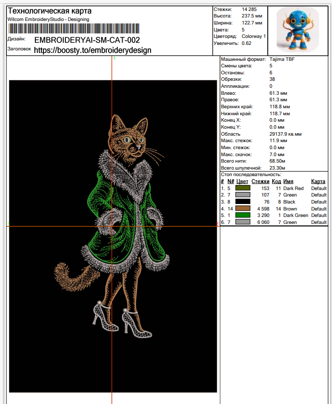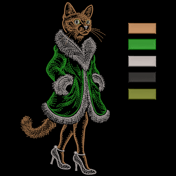 238×123 мм, 14 285 стежков, 5 цветов – мех блестит, усы при деле, кружевные туфельки на высоте 👠