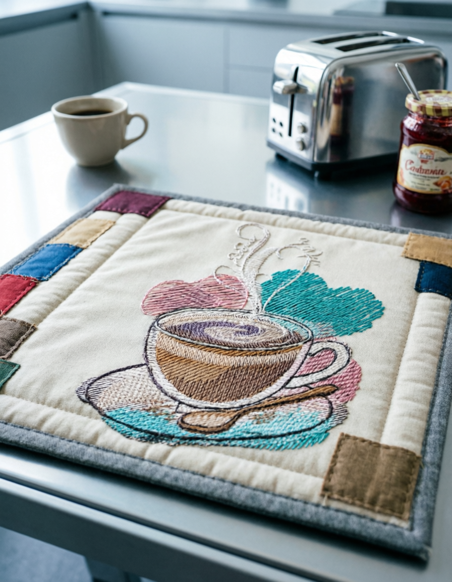 Вышивка с любовью, ароматом кофе и с пожеланием «Доброе утро» ☕💛