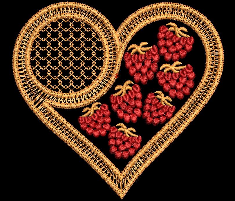 Размер: 115×123 мм – изящно переплелись сердце и малина.