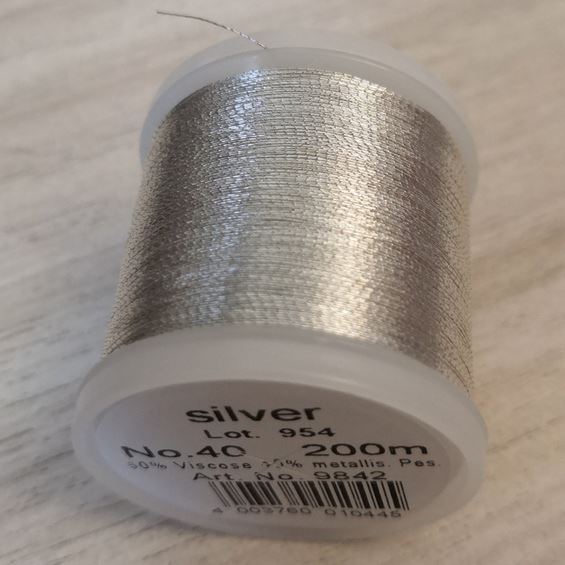 Классическая нить с визуальным эффектом и гладкой поверхностной структурой, содержит элементы чистого серебра, что придаёт всем вышивкам элегантность и благородный акцент.